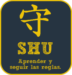 SHU (Obedecer o Proteger): Corresponde a la primera etapa en el camino de aprendizaje, la del estudiante, en la cual imitamos a los maestros o a los modelos de la doctrina. No preguntamos mucho sobre, ni nos cuestionamos el proceso, después de todo ya existe y se sabe su efectividad. La clave, es repetirlo, y fingirlo hasta lograrlo, hasta hacerlo parte de uno, y considerar que nuestro aprendizaje es la respuesta natural. Para esto es recomendado apoyarse en mentores, o en la parte prescrita de un marco de trabajo, que nos muestre hacia donde estamos apuntando.