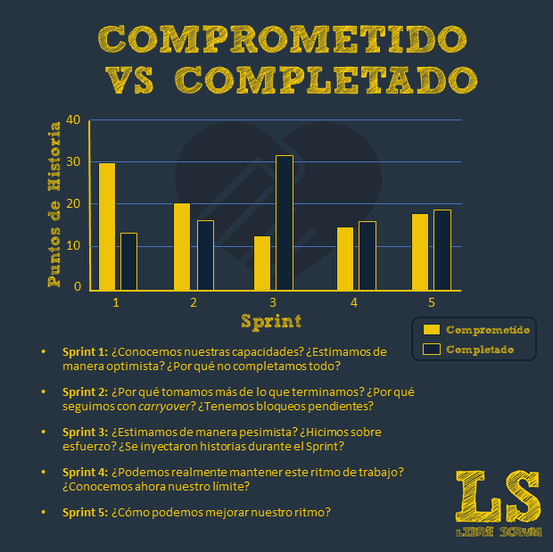 Descuidar este aspecto puede terminar con equipos frustrados por la sobre-carga de trabajo. Eso sí, corresponde levantar el pecho y recordar que no somos perfectos, y que pueden haber pequeñas variaciones debido a cambios ligeros o experimentos. Pero si comenzamos a notar un patrón considerable y repetitivo, tal vez sea hora de dedicar alguna retrospectiva específicamente a entender qué está pasando antes de que nos cataloguen de «poco confiables«.