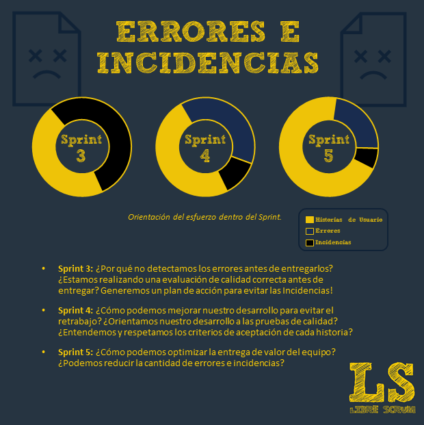 Nos referimos a errores cuando dentro de nuestra iteración, se nos devuelve algo en nuestro flujo. Cuando algo que supuestamente estaba listo para ser entregado, comienza a mostrar la hilacha y no logra pasar el ciclo de pruebas establecido. El llevarnos la cuchara a la boca mientras cocinamos y decir: «Le falta sal«, algo casi inevitable en procesos de incertidumbre, y sobre todo en la industria del software. Sin embargo, un gran número de errores conlleva a un gran volumen de retrabajo, y si un porcentaje importante de tu Sprint es dedicado a rehacer algo que podría haber sido finalizado hace días, o a resolver tareas que van surgiendo debido a problemas de desarrollo, entonces tenemos un problema.
